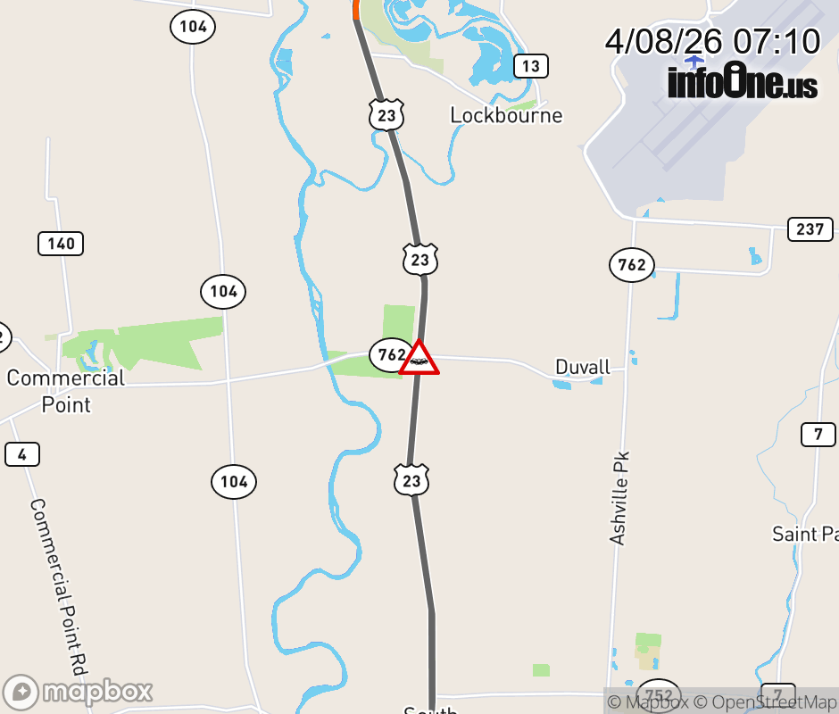 Expect lane closures on SR-762 East at US-23, due to a crash. ![]() |