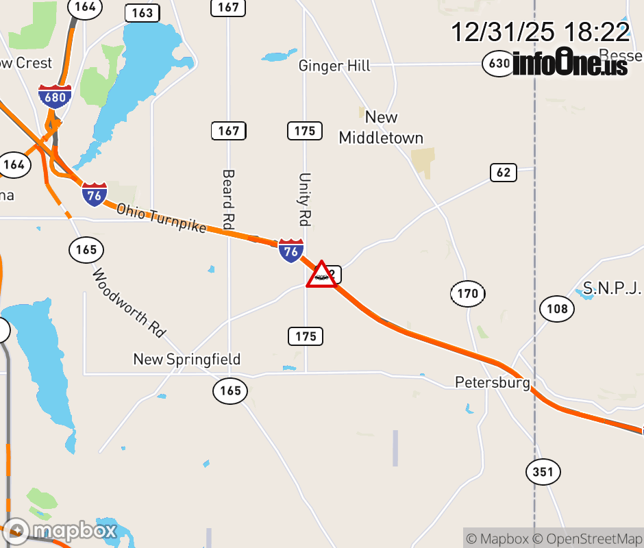 Canceled 12/31/25 7:00 PM Location: I-76 West (Ohio Turnpike) W, OH Accident.