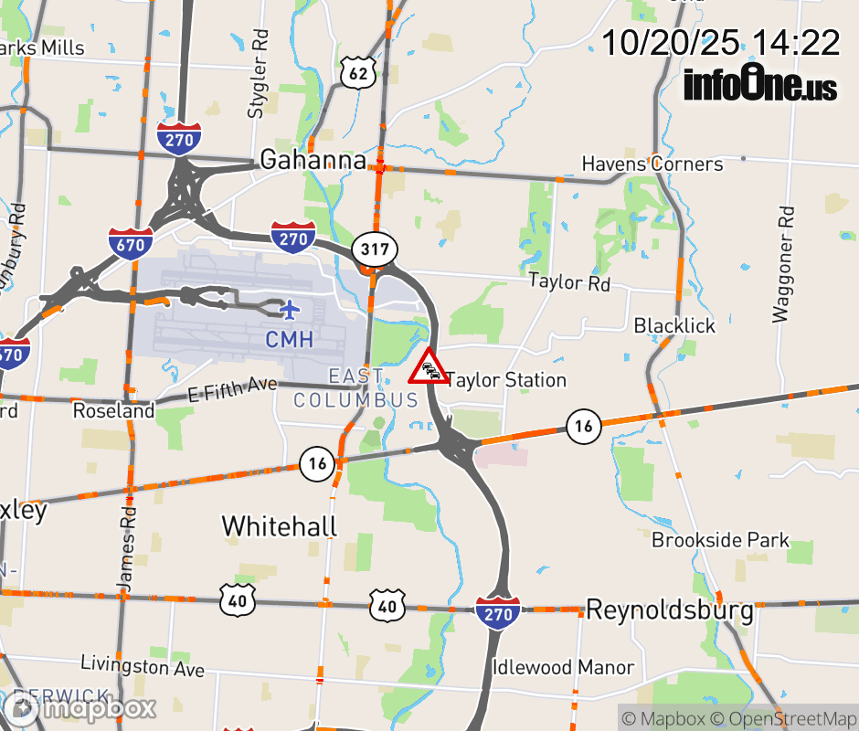 The 3 right lanes are blocked on I-270 South beyond SR-317/Hamilton Rd, due to debris on roadway. ![]() |