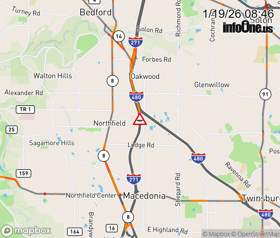 The left shoulder is blocked on I-271 North beyond SR-82 On-Ramp, due to a crash. ![]() |