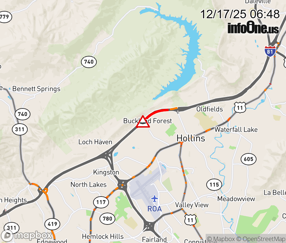 On I-81 at mile marker 145.3 in the County of Roanoke, motorists can expect delays due to a vehicle crash. The north left shoulder and left lane are closed. The south left shoulder is closed. Updated: Wed 12/17/25 6:48 AM EST ![]() Updated: Wed 12/17/25 6:48 AM EST |