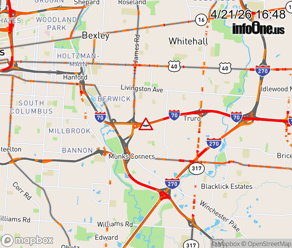 The right shoulder is blocked on I-70 East beyond James Rd, due to a crash. ![]() |