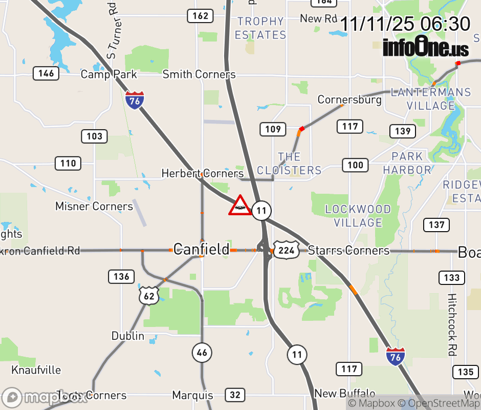 Expect lane closures on I-76 West (Ohio Turnpike) beyond SR-7, due to a crash. ![]() |