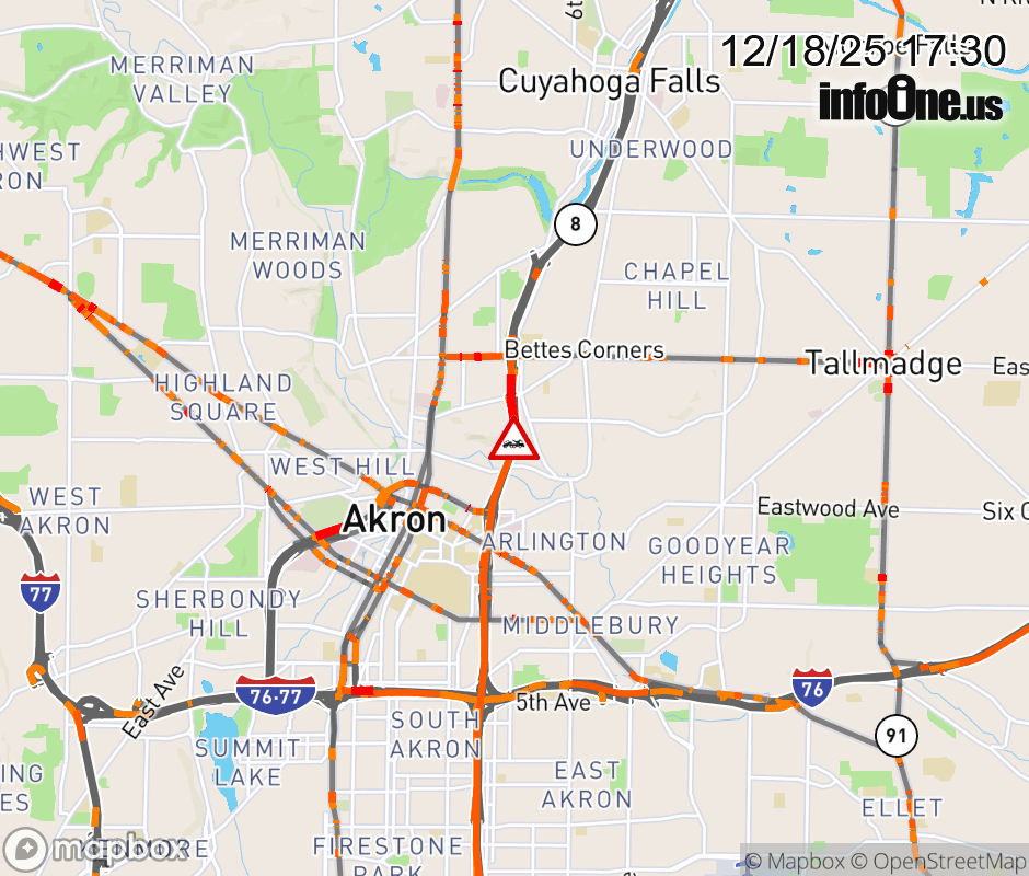 The left lane is blocked on SR-8 South/SR-59 West beyond SR-261/Tallmadge Ave, due to a disabled vehicle. ![]() |