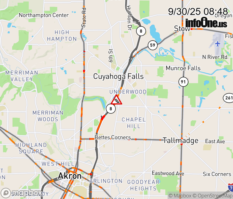 Canceled 9/30/25 8:50 AM Location: SR-8 North/SR-59 East N, OH Traffic hazard.
