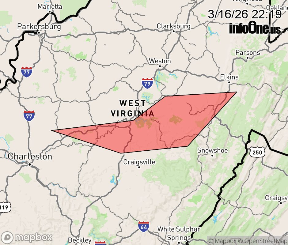 Canceled 3/16/26 10:45 PM Snow Squall Warning issued March 16 at 10:17PM EDT until March 16 at 10:45PM EDT by NWS Charleston WV The National Weather Service in Charleston West Virginia has issued a * Snow Squall Warning for... West central Randolph County in northeastern West Virginia... North central Nicholas County in southeastern West Virginia... Southeastern Lewis County in northern West Virginia... Southern Braxton County in north central West Virginia... Southern Upshur County in northeastern West Virginia... Southeastern Roane County in central West Virginia... Northern Webster County in northeastern West Virginia... Northern Clay County in north central West Virginia... * Until 1045 PM EDT. * At 1017 PM EDT, a dangerous snow squall was located along a line extending from near Rock Cave to near Sutton to near Amma, moving east at 35 mph. HAZARD...Intense bursts of heavy snow. Gusty winds leading to blowing snow and rapidly falling visibility. Wind gusts up to 35 mph. SOURCE...Radar and webcams. IMPACT...Travel will become difficult and potentially dangerous within minutes. This includes the following highways... Interstate 79 between mile markers 24 and 61. Route 19 between mile markers 54 and 68. Locations impacted include... Sutton, Webster Springs, Addison (Webster Springs), Mill Creek, Dailey, Birch River, Holly River State Park, Big Otter, Wallback, Amma, Harrison, Beverly, Huttonsville, Alexander, Eden, Helvetia, Pickens, Cleveland, Waneta, and Boggs. ![]() |
