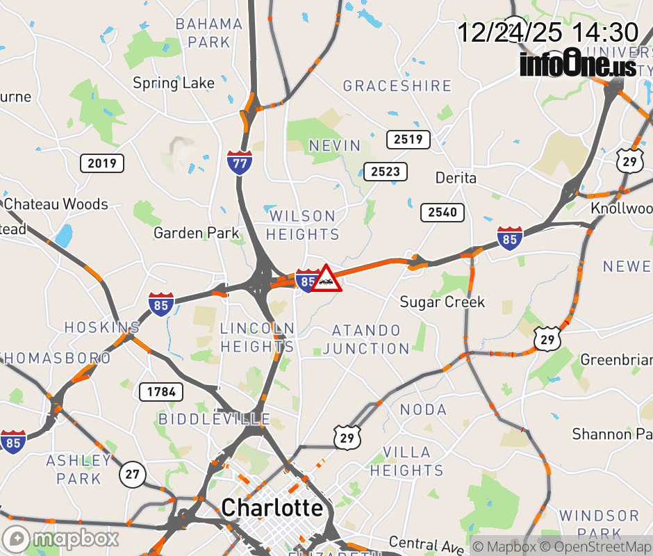 The right shoulder is closed past Exit 39 (Statesville Ave.). Updated: Wed 12/24/25 2:30 PM EST ![]() Updated: Wed 12/24/25 2:30 PM EST |