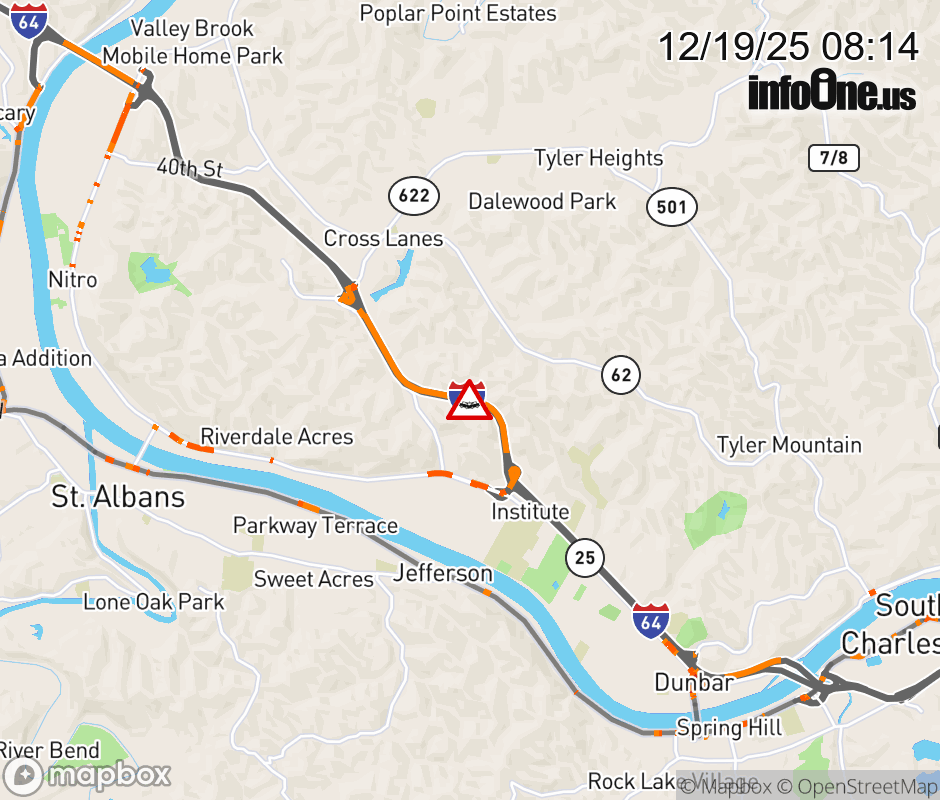 Canceled 12/19/25 9:20 AM Location: I-64 at MM 49.0, WV Accident.