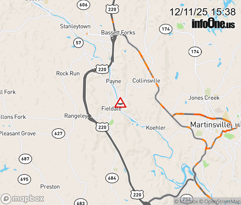 On VA-57 in the County of Henry, in the vicinity of Brandon Rd; Rt. 732E/W (Henry County), motorists can expect delays due to a vehicle crash. All east lanes are closed. All west lanes are closed. Updated: Thu 12/11/25 3:38 PM EST ![]() Updated: Thu 12/11/25 3:38 PM EST |