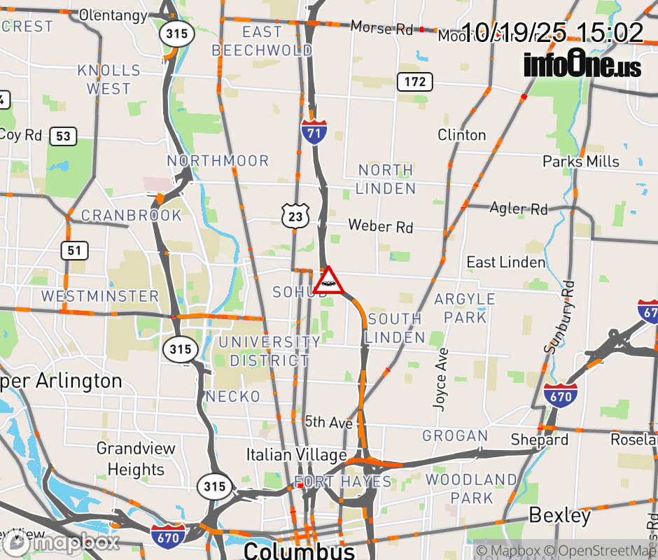 The right lane is blocked on I-71 South beyond Hudson St, due to a crash. ![]() |