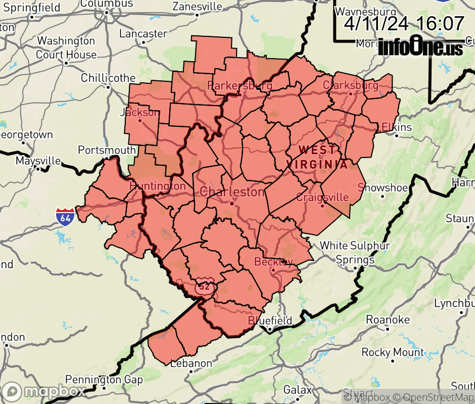 Canceled 4/11/24 8:03 PM Tornado Watch issued April 11 at 4:06PM EDT until April 11 at 9:00PM EDT by NWS Charleston WV THE NATIONAL WEATHER SERVICE HAS ISSUED TORNADO WATCH 105 IN EFFECT UNTIL 9 PM EDT THIS EVENING FOR THE FOLLOWING AREAS IN KENTUCKY THIS WATCH INCLUDES 4 COUNTIES IN NORTHEAST KENTUCKY BOYD CARTER GREENUP LAWRENCE IN OHIO THIS WATCH INCLUDES 8 COUNTIES IN SOUTHEAST OHIO ATHENS GALLIA JACKSON LAWRENCE MEIGS MORGAN VINTON WASHINGTON IN VIRGINIA THIS WATCH INCLUDES 2 COUNTIES IN SOUTHWEST VIRGINIA BUCHANAN DICKENSON IN WEST VIRGINIA THIS WATCH INCLUDES 32 COUNTIES IN CENTRAL WEST VIRGINIA BRAXTON CALHOUN CLAY GILMER JACKSON NICHOLAS ROANE TAYLOR WEBSTER IN NORTHERN WEST VIRGINIA BARBOUR DODDRIDGE HARRISON LEWIS PLEASANTS RITCHIE TYLER UPSHUR WIRT WOOD IN SOUTHERN WEST VIRGINIA BOONE FAYETTE KANAWHA LINCOLN LOGAN MCDOWELL MINGO PUTNAM RALEIGH WYOMING IN WESTERN WEST VIRGINIA CABELL MASON WAYNE THIS INCLUDES THE CITIES OF ALUM CREEK, ASHLAND, ATHENS, BECKLEY, BELINGTON, BELMONT, BELPRE, BRIDGEPORT, BUCKHANNON, BURNSVILLE, CANNONSBURG, CARTER CAVES STATE PARK, CEREDO, CHAPMANVILLE, CHARLESTON, CLARKSBURG, CLAY, CLINTWOOD, CRAIGSVILLE, ELIZABETH, FAYETTEVILLE, FLATWOODS, GALLIPOLIS, GARY, GASSAWAY, GLENVILLE, GRAFTON, GRANTSVILLE, GRAYSON, GRAYSON LAKE STATE PARK, GRUNDY, HAMDEN, HAMLIN, HARRISVILLE, HARTS, HUNTINGTON, HURRICANE, IRONTON, JACKSON, KENOVA, LAKE VESUVIUS, LOGAN, LOUISA, MADISON, MAN, MARIETTA, MCARTHUR, MCCONNELSVILLE, MIDDLEBOURNE, MULLENS, NEW HAVEN, OAK HILL, OAK HILL, OCEANA, OLIVE HILL, PADEN CITY, PARKERSBURG, PENNSBORO, PHILIPPI, PINEVILLE, POINT PLEASANT, POMEROY, RACELAND, RAVENSWOOD, RICHWOOD, RIPLEY, RUSSELL, SAINT ALBANS, SISTERSVILLE, SOUTH CHARLESTON, SOUTH POINT, SPENCER, ST. MARYS, STOCKPORT, SUMMERSVILLE, SUTTON, TEAYS VALLEY, VANSANT, VIENNA, WAR, WAYNE, WEBSTER SPRINGS, WELCH, WELLSTON, WEST UNION, WESTON, WILLIAMSON, AND YATESVILLE LAKE STATE PARK. ![]() |