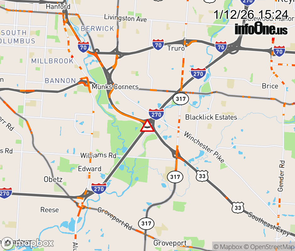 Expect lane closures on Ramp I-270 South to US-33 East, due to a crash. ![]() |