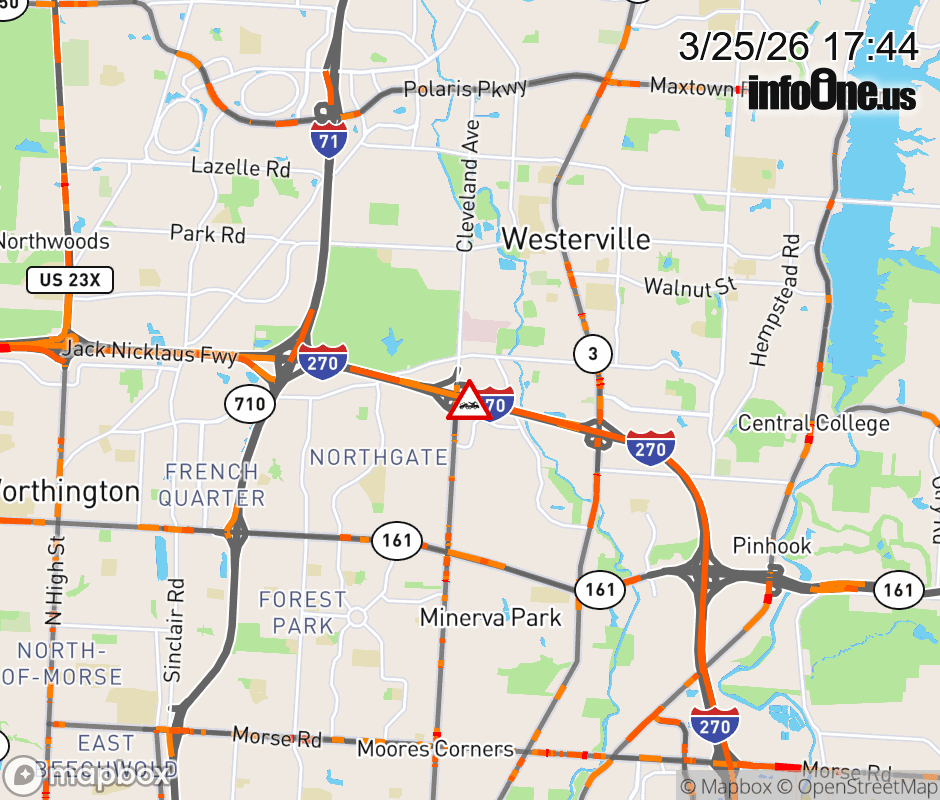The left lane is blocked on I-270 West beyond SR-710/Cleveland Ave, due to a disabled vehicle. ![]() |