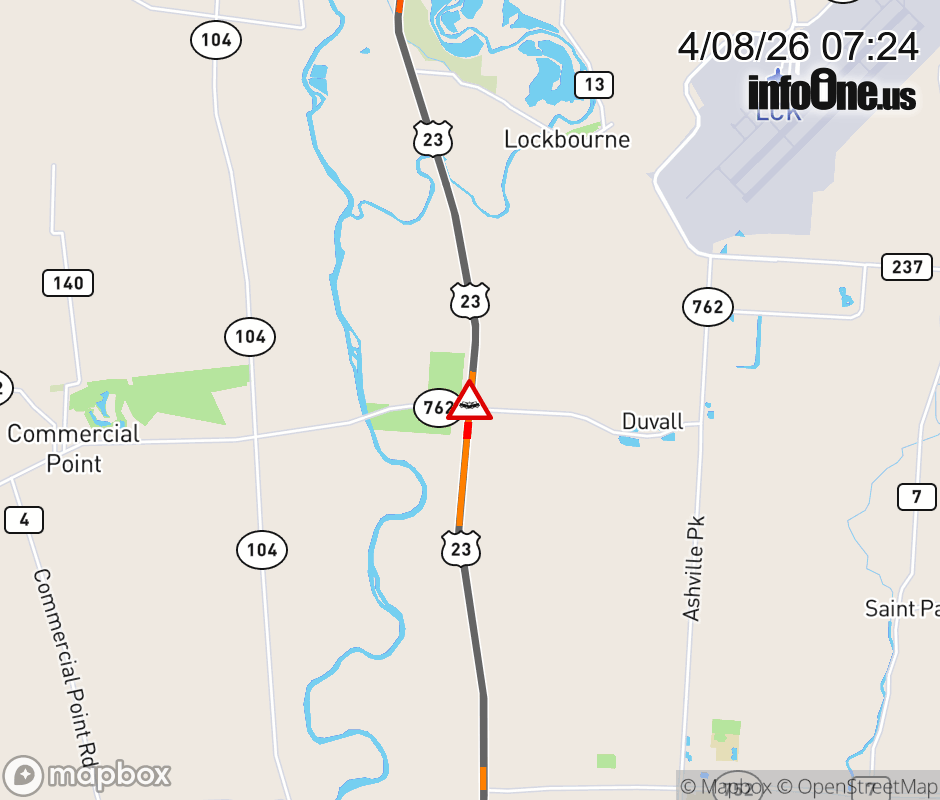 All lanes are closed on US-23 North at SR-762, due to a crash. Updated: Wed 4/8/26 7:24 AM EDT ![]() Updated: Wed 4/8/26 7:24 AM EDT |