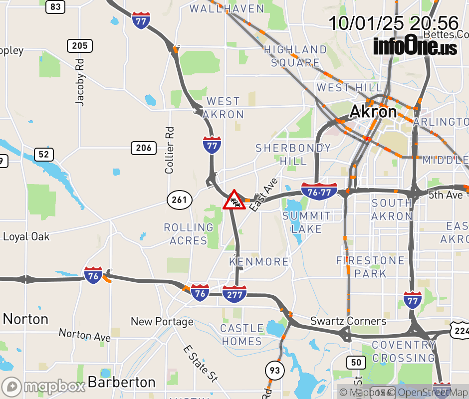 The 2 right lanes are blocked on I-77 North at I-76, due to repairs/maintenance. ![]() |