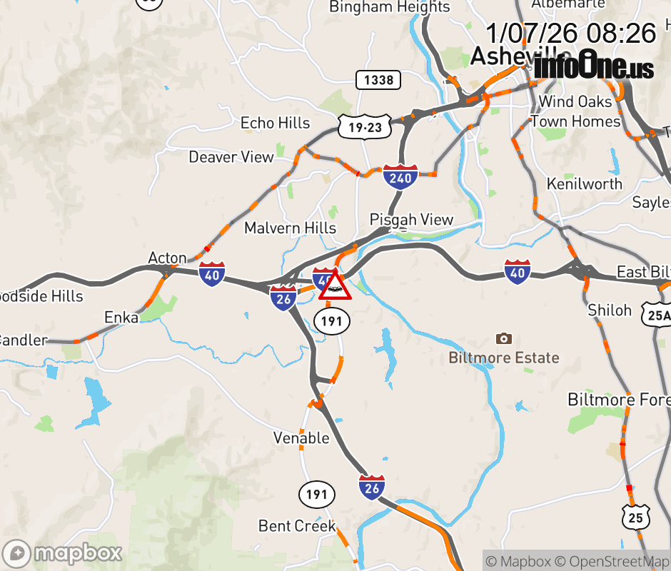 The right shoulder is closed from NC 191 (Brevard Road) to I-40 East. ![]() |