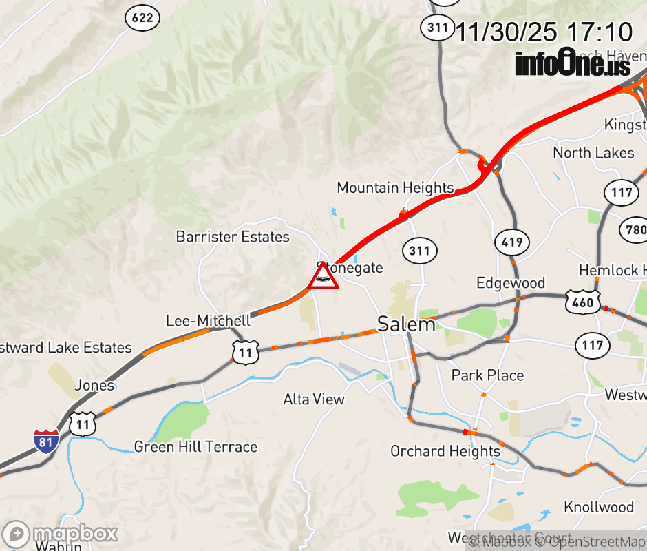 On I-81 at mile marker 138.7 in the County of Roanoke, motorists can expect delays due to a multi-vehicle crash. The south right shoulder is closed. Updated: Sun 11/30/25 5:10 PM EST ![]() Updated: Sun 11/30/25 5:10 PM EST |