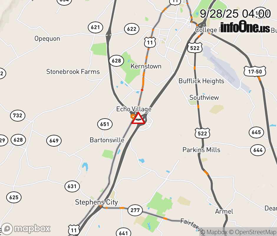On VA-37 in the County of Frederick, in the vicinity of the ramp to I-81S, motorists can expect delays due to a vehicle crash. The south left shoulder and left lane are closed. Updated: Sun 9/28/25 4:00 AM EDT ![]() |