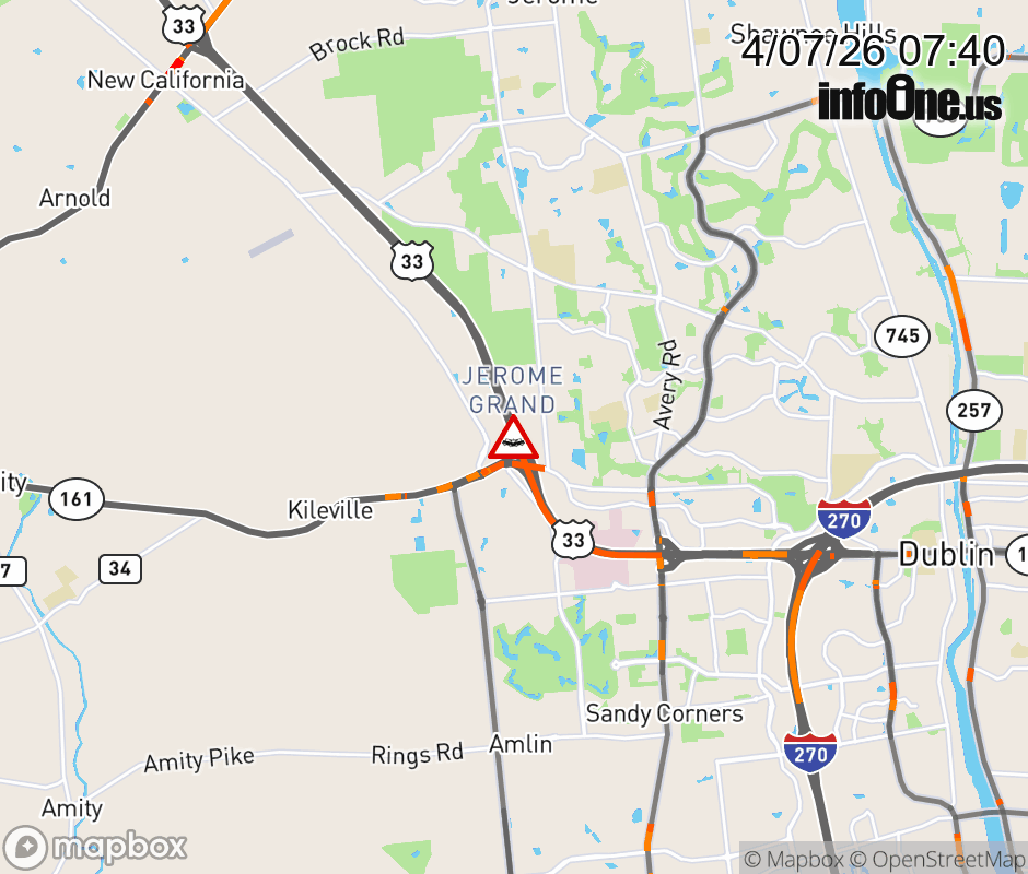 Ramp to SR-161 West/ Post Rd from US-33 East is blocked due to crash. ![]() |