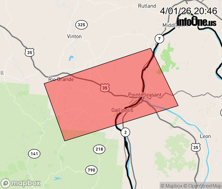 Canceled 4/1/26 10:08 PM Flash Flood Warning issued April 1 at 8:44PM EDT until April 1 at 10:15PM EDT by NWS Charleston WV At 844 PM EDT, Doppler radar indicated thunderstorms produced heavy rain across the warned area earlier this evening. Between 1 and 1.5 inches of rain have fallen. Flash flooding is ongoing or expected to begin shortly. Flooding has been reported along CR-16 north of Point Pleasant. HAZARD...Flash flooding caused by thunderstorms. SOURCE...Radar. IMPACT...Flash flooding of small creeks and streams, urban areas, highways, streets and underpasses as well as other poor drainage and low-lying areas. Some locations that will experience flash flooding include... Point Pleasant, Gallipolis, Rio Grande, Henderson, Cheshire and Adamsville. ![]() |