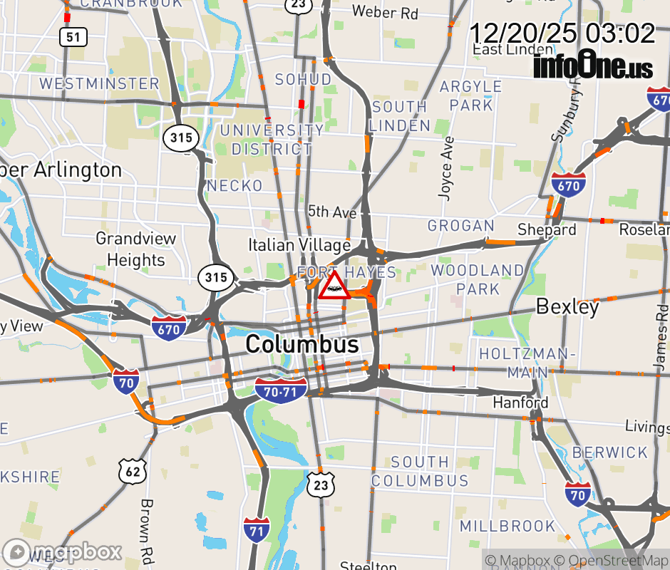 Expect lane closures on I-670 East at SR-3/Cleveland Ave, due to a crash. ![]() |