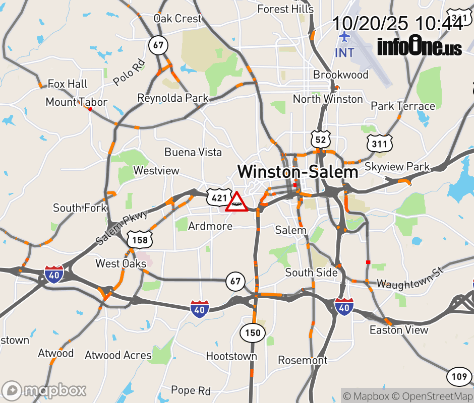The right lane is closed past Exit 234a (Peters Creek Pkwy). Updated: Mon 10/20/25 10:44 AM EDT ![]() Updated: Mon 10/20/25 10:44 AM EDT |