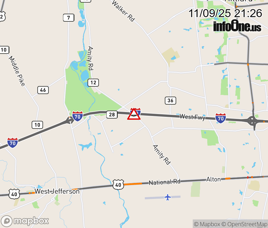The right lane is blocked on I-70 East beyond SR-142/Plain City, due to a crash. ![]() |