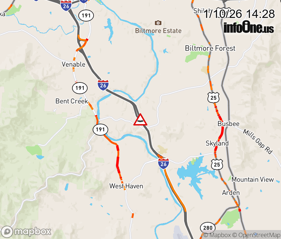 The road is closed at Exit 37 (NC 146/Long Shoals Rd). Updated: Sat 1/10/26 2:28 PM EST ![]() Updated: Sat 1/10/26 2:28 PM EST |