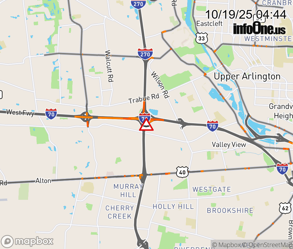 Ramp I-270 North to I-70 East (Westside) CLOSED because of a crash. ![]() |