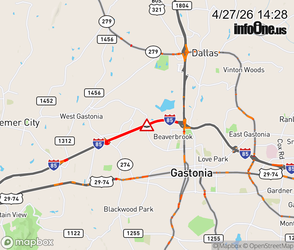 The left lane is closed past Exit 14 (NC-274). ![]() |