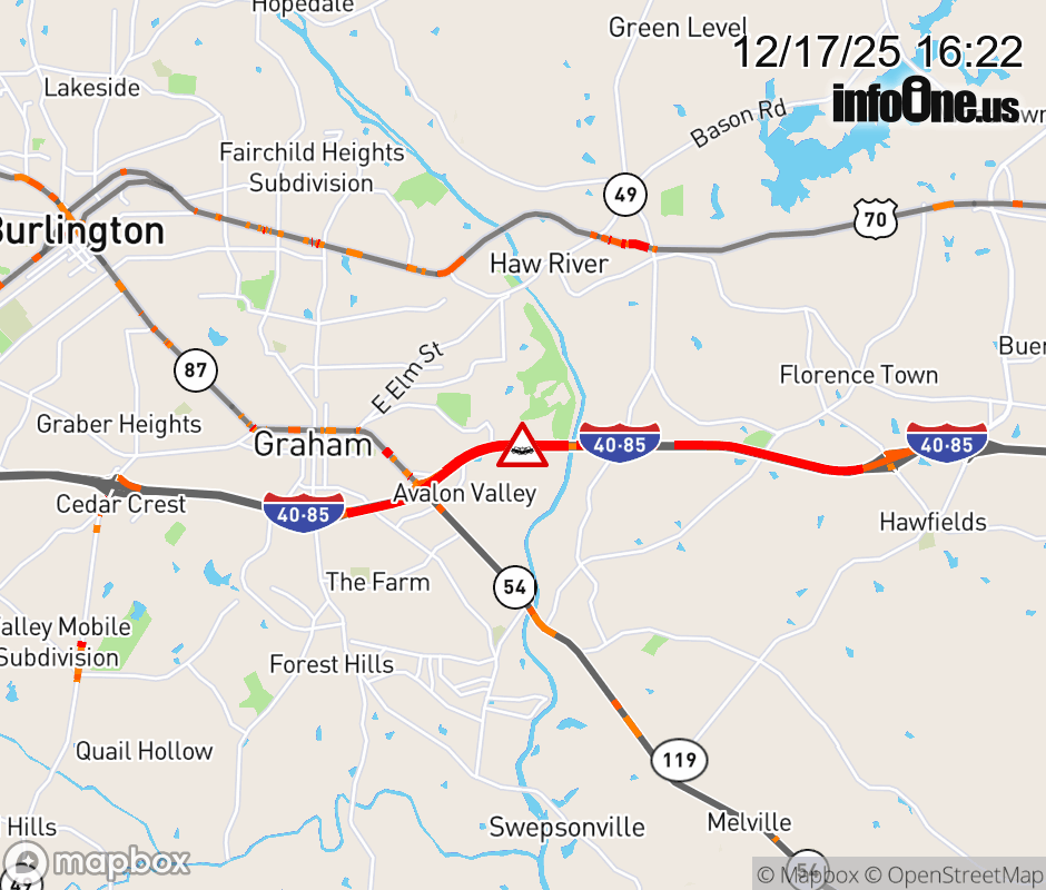 Canceled 12/17/25 7:22 PM Location: I-40W at MM 150, NC Vehicle Crash.