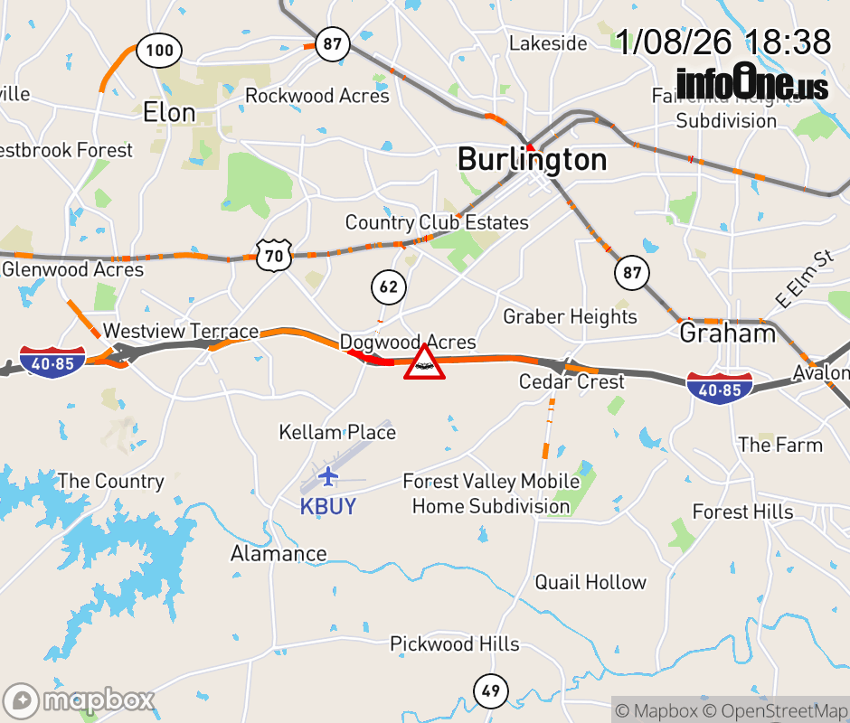 The right lane is closed before Exit 145(NC 62). ![]() |