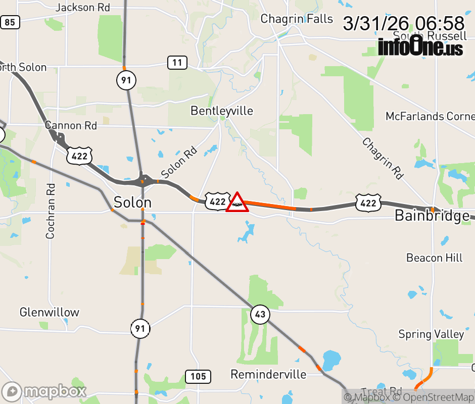 Expect lane closures on US-422 West beyond SR-306/Chillicothe Rd, due to a crash. ![]() |