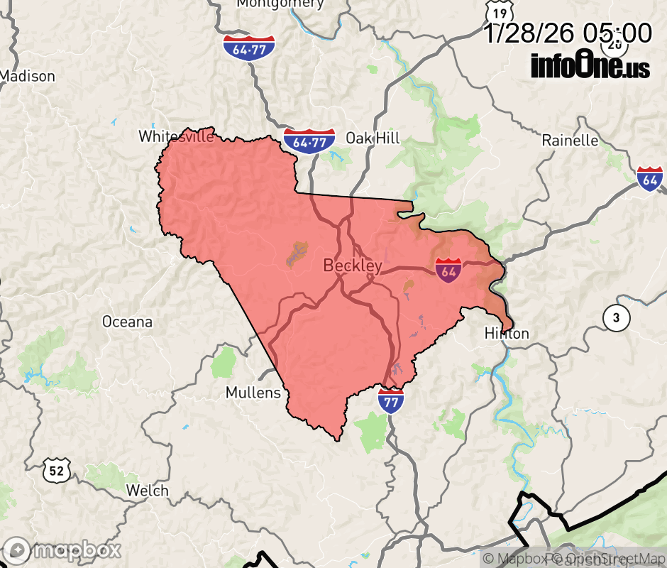 Canceled 1/28/26 10:55 AM Cold Weather Advisory issued January 28 at 4:58AM EST until January 29 at 11:00AM EST by NWS Charleston WV * WHAT... Very cold wind chills as low as 10 below expected. * WHERE... Southeast Raleigh County. * WHEN... From 7 PM this evening to 11 AM EST Thursday. * IMPACTS... The cold wind chills as low as 10 below zero could result in hypothermia if precautions are not taken. ![]() |