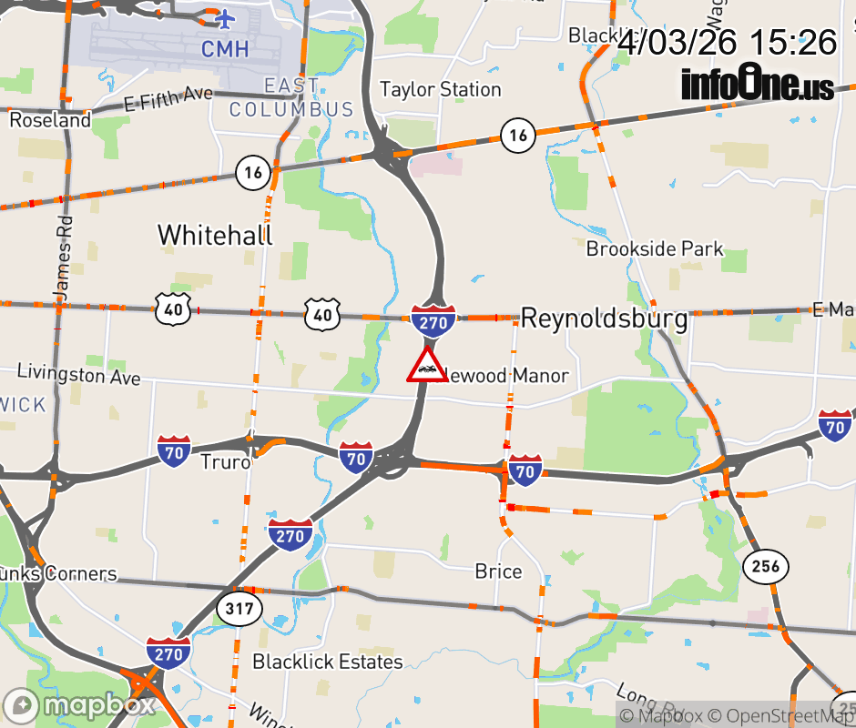 The left shoulder is blocked on I-270 North Collector at US-40/E Main St East, due to a disabled vehicle. ![]() |