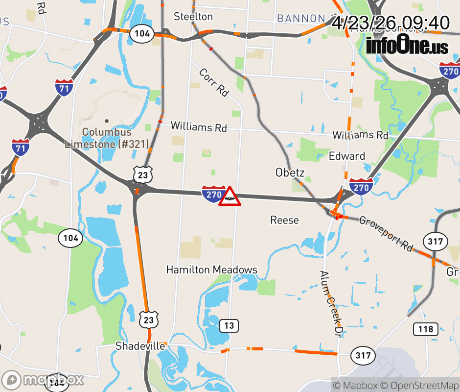 The right shoulder is blocked on I-270 East beyond US-23/S High St North, due to a crash. ![]() |