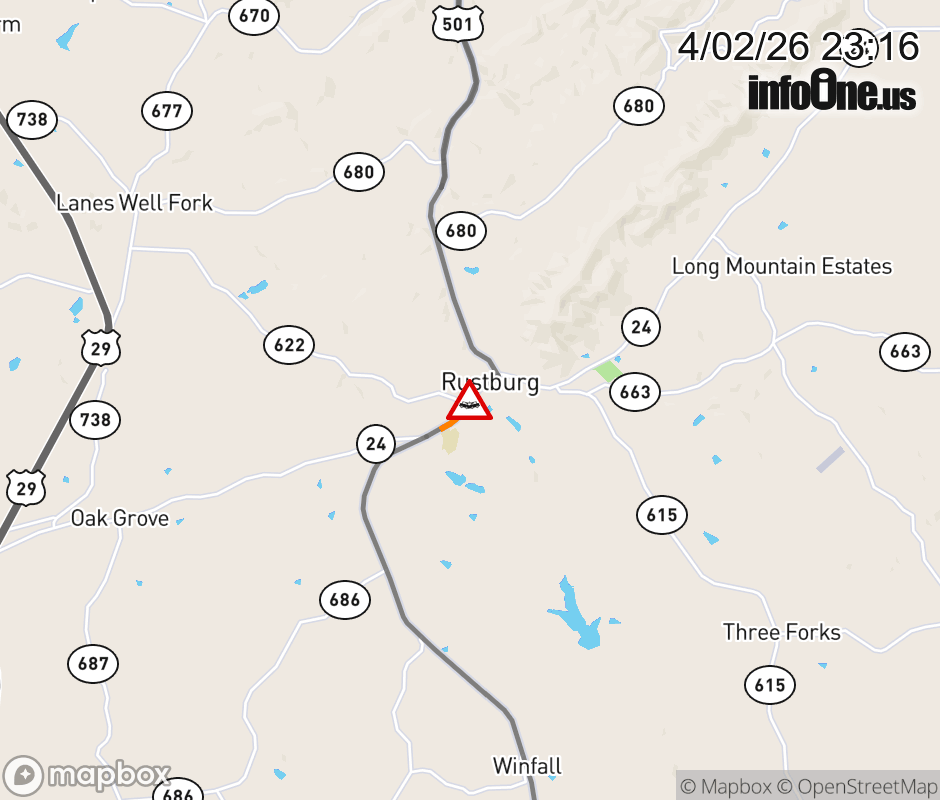 On US-501 North in the County of Campbell, in the vicinity of Drummer St; Rt 9074; Rt. 9074N/S (Campbell County), motorists can expect delays due to a vehicle crash. Lane closures exist. ![]() |
