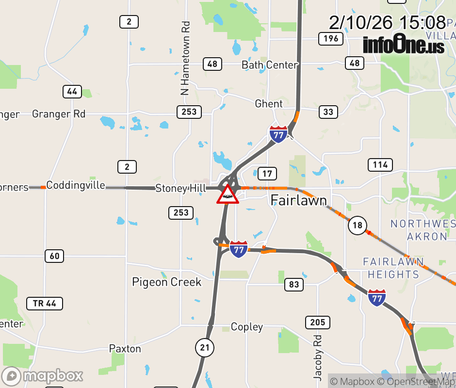The left lane is blocked on I-77 South at SR-18 East, due to a crash. ![]() |