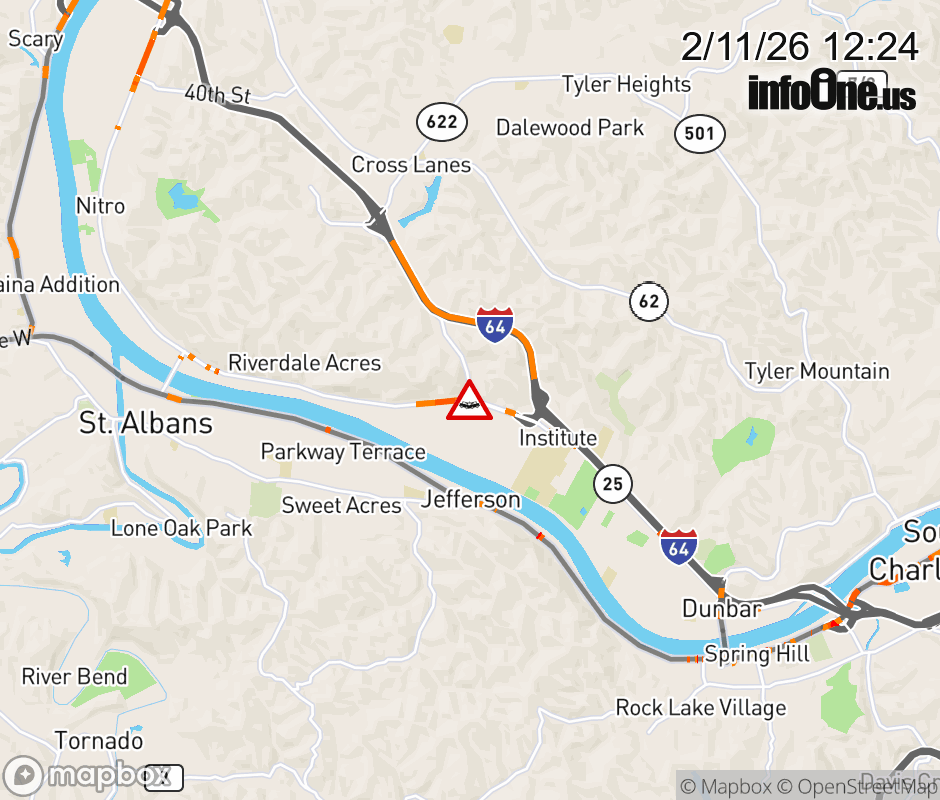 Vehicle Crash on WV-25 (1st Ave S) & New Goff Mountain Rd in Institute. ![]() |
