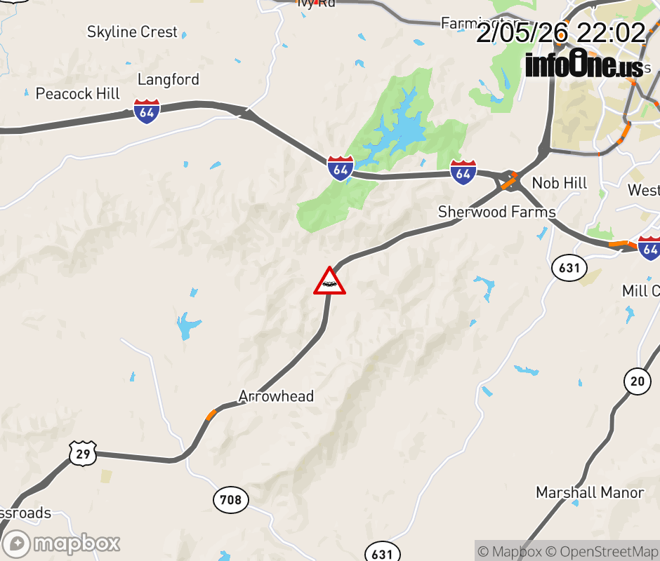 On US-29 South in the County of Albemarle, in the vicinity of Crossover; Poorhouse Rd; Rt. 745N/S (Albemarle County), motorists can expect delays due to a vehicle crash. Updated: Thu 2/5/26 10:02 PM EST ![]() Updated: Thu 2/5/26 10:02 PM EST |