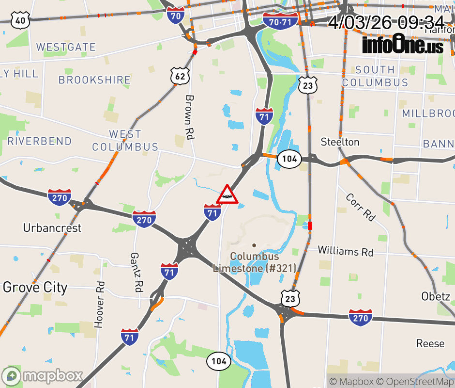 The left lane is blocked on I-71 South beyond SR-104/Frank Rd, due to a crash. ![]() |