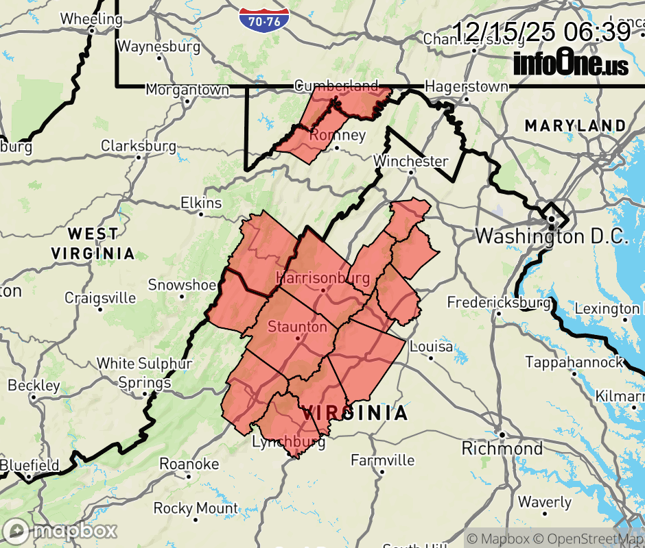 Canceled 12/15/25 9:48 AM Cold Weather Advisory issued December 15 at 6:37AM EST until December 15 at 10:00AM EST by NWS Baltimore MD/Washington DC * WHAT... Very cold wind chills between 10 and 20 below zero. * WHERE... In Maryland, Extreme Western Allegany County. In Virginia, Central Virginia Blue Ridge and Northern Virginia Blue Ridge, and Eastern Highland County. In West Virginia, Eastern Pendleton and Western Mineral Counties. * WHEN... Until 10 AM EST this morning. * IMPACTS... The cold wind chills approaching 20 below zero could cause hypothermia and frostbite on exposed skin in as little as 30 minutes. ![]() |