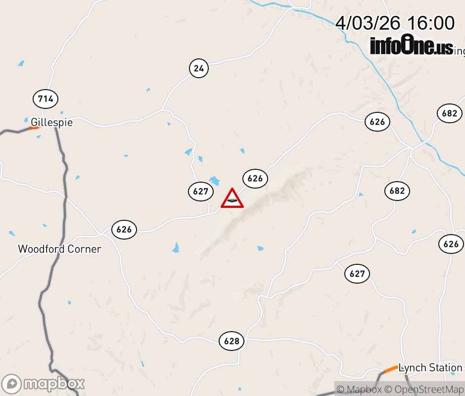 On Rt. 626 North in the County of Bedford, in the vicinity of Echo Forest Way; Preston Mill Rd; Rt. 627N/S (Bedford County), motorists can expect delays due to a multi-vehicle crash. Lane closures exist. Updated: Fri 4/3/26 4:00 PM EDT ![]() Updated: Fri 4/3/26 4:00 PM EDT |