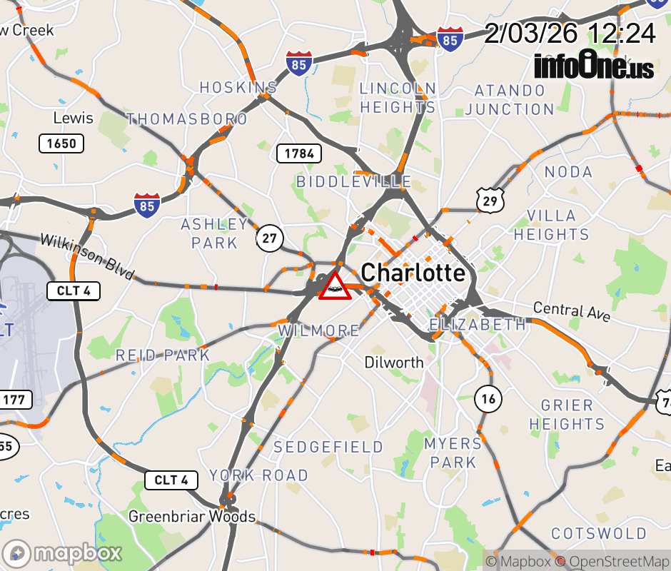 The two right lanes are closed near Exit 1D (S. Mint St.). ![]() |
