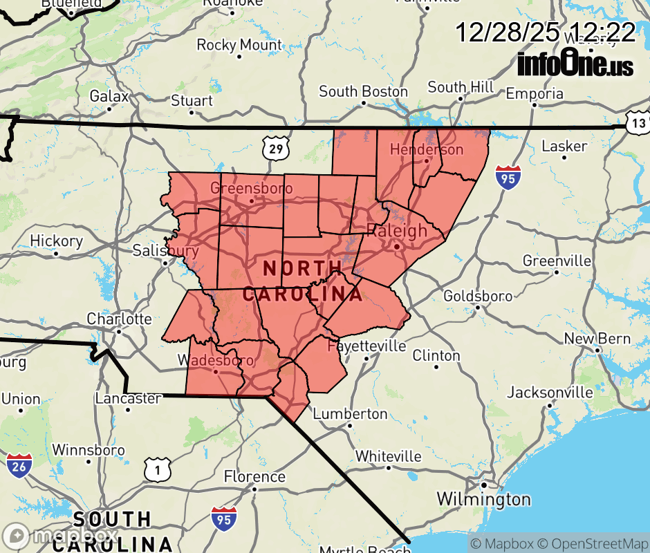 Canceled 12/29/25 3:01 AM Red Flag Warning issued December 28 at 12:21PM EST until December 29 at 6:00PM EST by NWS Raleigh NC ...RED FLAG WARNING IN EFFECT FROM NOON TO 6 PM EST MONDAY FOR THE PIEDMONT OF CENTRAL NC... Low relative humidity and strong, veering wind gusts will result in Red Flag criteria behind the cold front Monday afternoon. The National Weather Service in Raleigh has issued a Red Flag Warning for low humidity and strong wind gusts, which is in effect from noon to 6 PM EST Monday. * AFFECTED AREA... Fire Weather Zone 007 Person, Fire Weather Zone 008 Granville, Fire Weather Zone 009 Vance, Fire Weather Zone 010 Warren, Fire Weather Zone 021 Forsyth, Fire Weather Zone 022 Guilford, Fire Weather Zone 023 Alamance, Fire Weather Zone 024 Orange, Fire Weather Zone 025 Durham, Fire Weather Zone 026 Franklin, Fire Weather Zone 038 Davidson, Fire Weather Zone 039 Randolph, Fire Weather Zone 040 Chatham, Fire Weather Zone 041 Wake, Fire Weather Zone 073 Stanly, Fire Weather Zone 074 Montgomery, Fire Weather Zone 075 Moore, Fire Weather Zone 076 Lee, Fire Weather Zone 077 Harnett, Fire Weather Zone 083 Anson, Fire Weather Zone 084 Richmond, Fire Weather Zone 085 Scotland and Fire Weather Zone 086 Hoke. * TIMING... From noon to 6 PM EST Monday. * WINDS... West 20 to 25 mph with gusts up to 35 mph. * RELATIVE HUMIDITY... As low as 20 percent. * IMPACTS... Any fire that develops will catch and spread quickly. Outdoor burning is not recommended. ![]() |