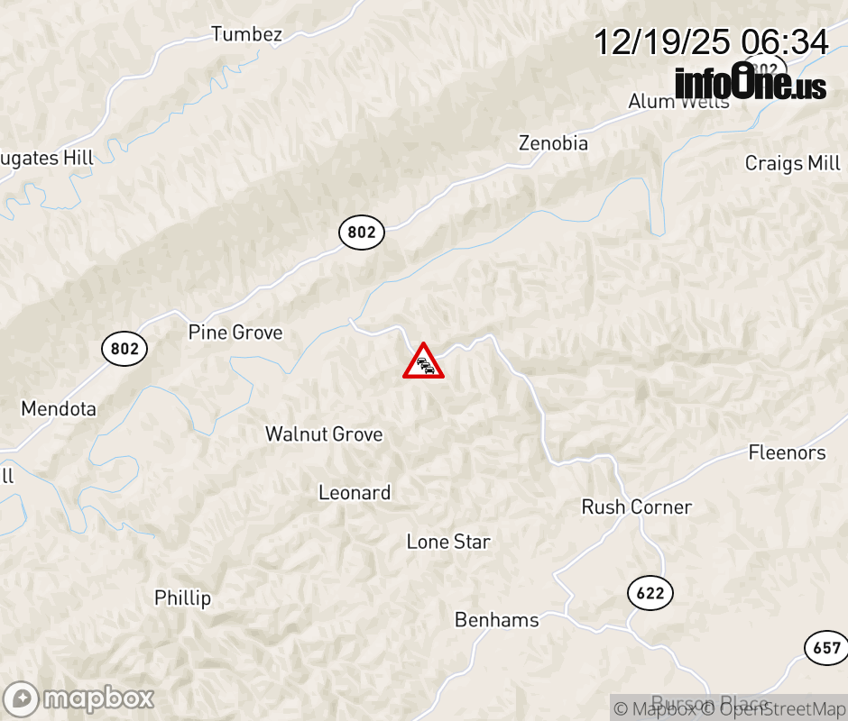 On Rt. 622 in the County of Washington, in the vicinity of Walnut Grove Rd; Rt. 616E/W (Washington County), motorists can expect delays due to weather. All north lanes are closed. All south lanes are closed. ![]() |