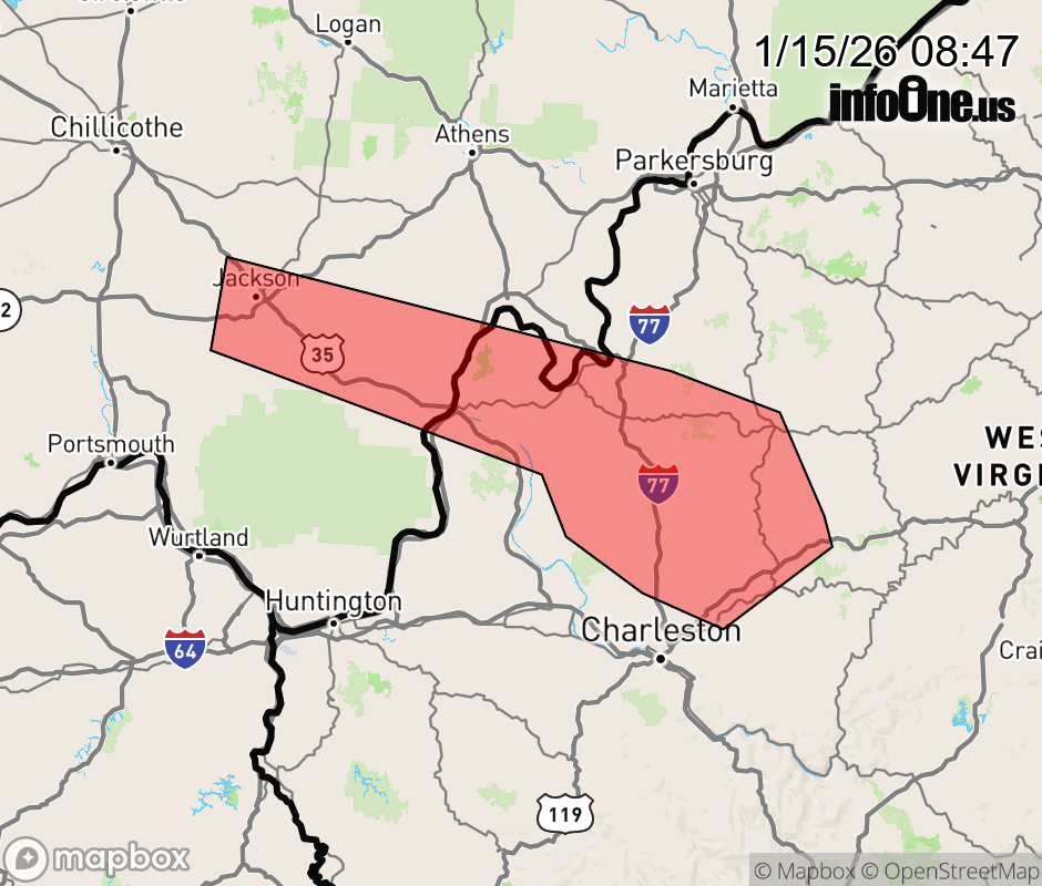 Canceled 1/15/26 9:45 AM Snow Squall Warning issued January 15 at 8:45AM EST until January 15 at 9:45AM EST by NWS Charleston WV The National Weather Service in Charleston West Virginia has issued a * Snow Squall Warning for... Southern Meigs County in southeastern Ohio... Northeastern Gallia County in southeastern Ohio... Central Jackson County in southeastern Ohio... Southeastern Vinton County in southeastern Ohio... Mason County in western West Virginia... Northeastern Putnam County in western West Virginia... Northeastern Kanawha County in central West Virginia... Roane County in central West Virginia... Jackson County in northwestern West Virginia... * Until 945 AM EST. * At 845 AM EST, a dangerous snow squall was located along a line extending from near Jackson to near Ripley to near Sissonville to near Clendenin, and is nearly stationary. HAZARD...Intense bursts of heavy snow. Gusty winds leading to blowing snow and visibility rapidly falling to less than one-quarter mile. Wind gusts up to 35 mph. SOURCE...Radar indicated. IMPACT...Travel will become difficult and potentially dangerous within minutes. This includes the following highways... Interstate 79 between mile markers 7 and 28. Interstate 77 in West Virginia between mile markers 111 and 146. Locations impacted include... Jackson, Wellston, Point Pleasant, Gallipolis, Ripley, Spencer, Oak Hill, Rio Grande, Racine, Ravenswood, Sissonville, New Haven, Clendenin, Sandyville, Elkview, Kenna, Amma, Pinch, Middleport, and Hartford City. ![]() |