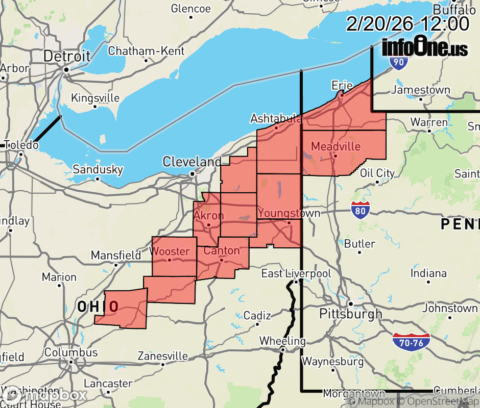 Canceled 2/20/26 6:57 PM Wind Advisory issued February 20 at 11:59AM EST until February 20 at 7:00PM EST by NWS Cleveland OH * WHAT... Southwest to West winds 20 to 30 mph with gusts up to 50 mph. * WHERE... Portions of north central and northeast Ohio and northwest Pennsylvania. * WHEN... Until 7 PM EST this evening. * IMPACTS... Gusty winds will blow around unsecured objects. Tree limbs could be blown down and a few power outages may result. ![]() |