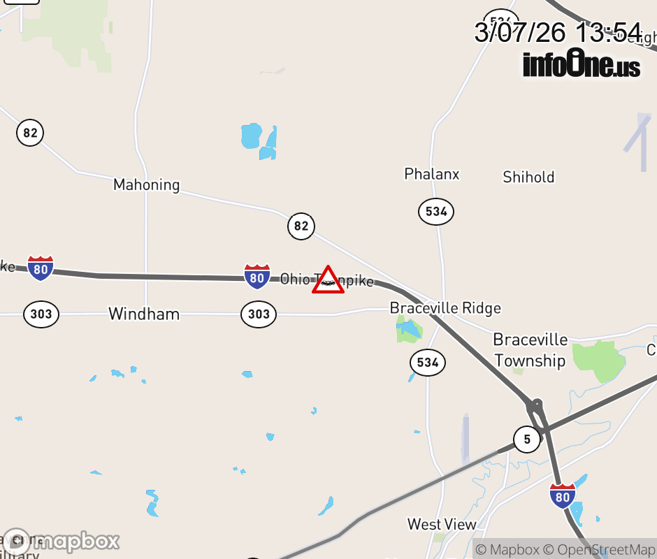 Expect lane closures on I-80 West (Ohio Turnpike) beyond SR-5, due to a crash. ![]() |