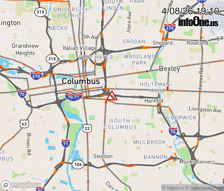 The left lane is blocked on Ramp I-71 South to I-70 East, due to repairs/maintenance. ![]() |